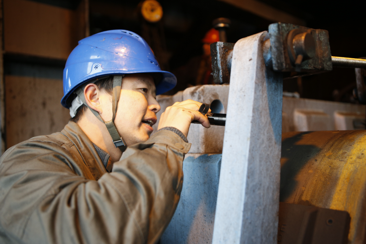 最考驗的還是寒冬酷暑時節。夏季烈日高懸,但工作連體服、安全帽、勞保鞋、手套等安全防護措施一個也不能少,在煤塵較大的空間要戴上防護口罩,各種防護裝備變成了一個“小鍋爐”,對薛俊江進行著高溫“烤”驗。冬季天寒地凍,幾十米高的大機上狂風呼嘯,這時防護裝備又成了唯一的屏障,他只能低著頭,瞇著眼睛,一邊抵抗著寒風的凌虐,一邊加緊進行維修工作。