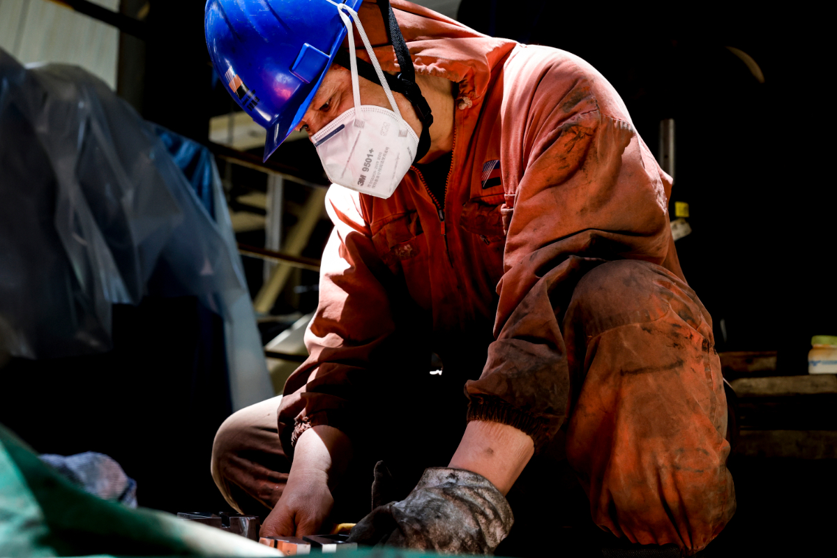 偌大的發電機旁,身著橘色連體服的熱機五班班員顧偉正全神貫注地對著軸瓦進行細致的修刮工作。他穩穩地拿著刮刀,雙手熟練而有力地操作著,每一次刮削都精準而恰到好處,時而附身貼近,仔細觀察修刮效果,時而調整姿勢和力度,確保每一處修刮都能達到理想狀態。周圍的工具擺放整齊,顧偉的額頭漸漸滲出細密的汗珠,跪地的姿勢也不知堅持了多久,但他毫不在意,依然沉浸在精細的修刮工作中,只為讓其在設備運行中發揮出最佳性能,保證運轉順暢。