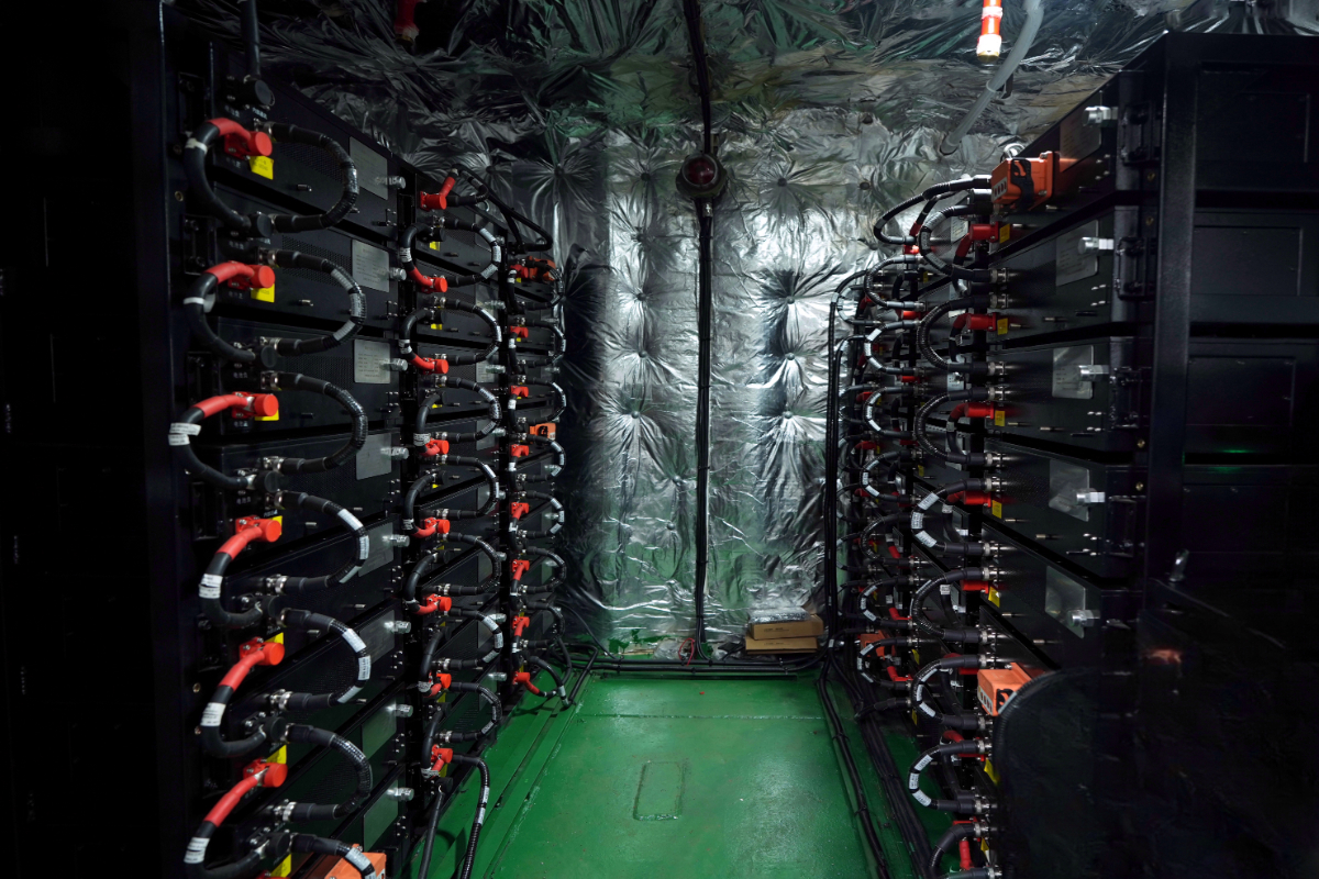 “油改電”貨船電池間內(nèi)電池組。 邵子謙 攝
