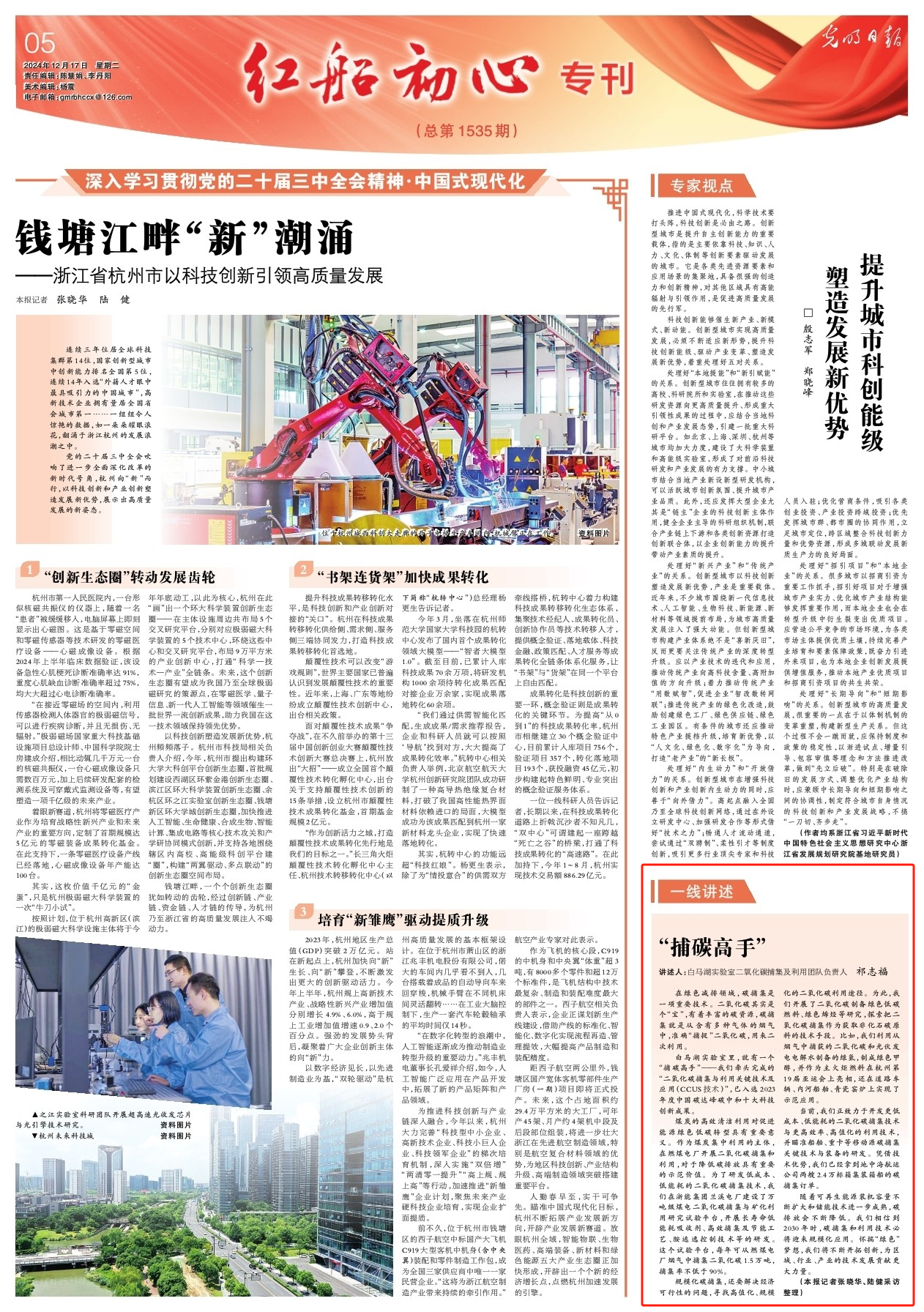 編者按 煤炭的高效清潔利用對促進(jìn)能源綠色低碳轉(zhuǎn)型具有重要意義。作為煤炭集中利用的主體,在燃煤電廠開展二氧化碳捕集和利用,對于降低碳排放具有重要的示范價(jià)值。12月17日,《光明日報(bào)》于“紅船初心專刊”發(fā)布報(bào)道,邀請白馬湖實(shí)驗(yàn)室二氧化碳捕集及利用團(tuán)隊(duì)負(fù)責(zé)人祁志福立足一線工作,講述實(shí)驗(yàn)室里的“捕碳高手”。