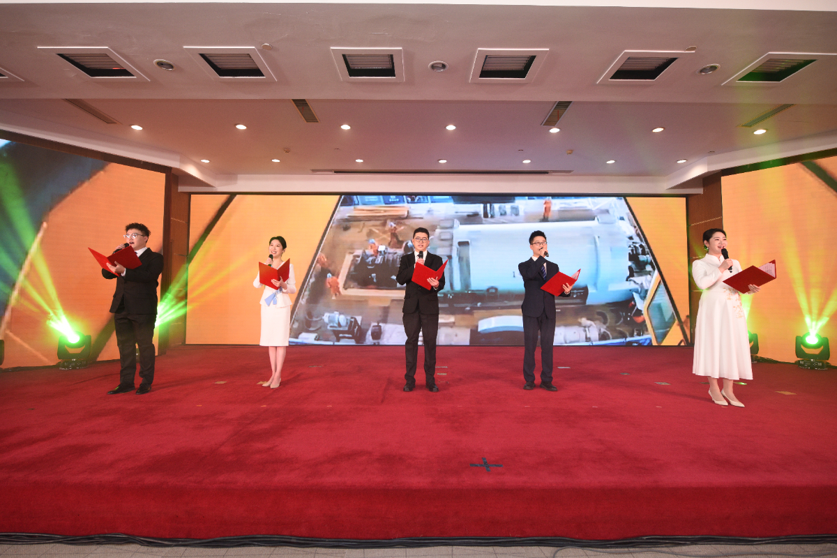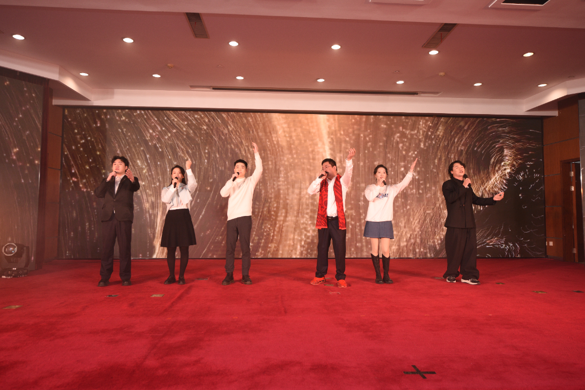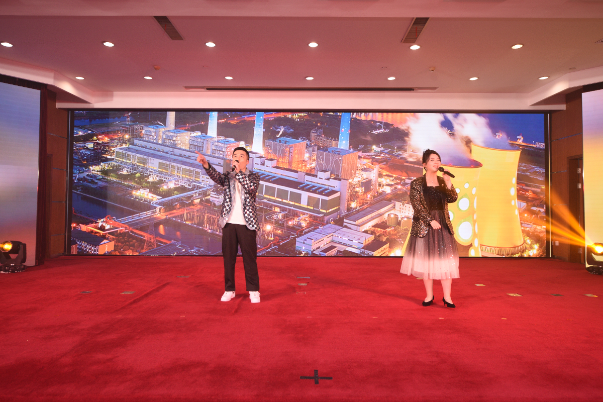 團(tuán)拜會(huì)上,“向新而行 能創(chuàng)未來”主題文藝演出以“致敬2024祝福2025”開場(chǎng),展示集團(tuán)2024年度十大新聞,致敬在過去一年里奮力拼搏、擔(dān)當(dāng)作為的浙能人。舞蹈《前程螣螣》,紅燈籠與演員們靈動(dòng)的身姿相互輝映,營(yíng)造出喜慶而又充滿希望的氛圍;朗誦《了不起的你》由浙江省勞動(dòng)模范張曉煒和青年職工共同演繹,用真摯情感和鏗鏘語(yǔ)調(diào)贊美拼搏奮進(jìn)的每一位浙能人;歌曲串燒《熠熠的光》 由五首歌曲相互串聯(lián),充滿力量與希望,如熠熠的光,唱出了浙能人的奮斗與夢(mèng)想;原創(chuàng)說唱《電廠英雄》以節(jié)奏強(qiáng)烈的旋律和充滿力量的詞句,闡述了電廠工作者在崗位上的堅(jiān)守與付出,歌頌了所有為能源事業(yè)奉獻(xiàn)的英雄們,該作品入選2024年全國(guó)總工會(huì)網(wǎng)絡(luò)正能量歌曲征集活動(dòng)百?gòu)?qiáng)名單,被評(píng)為聲暖人心歌曲;星火說《在世界屋脊追風(fēng)逐光》通過情景再現(xiàn)的形式,講述了一批批浙能人奔赴大西北,克服重重困難的故事,傳遞出浙能人對(duì)能源事業(yè)的執(zhí)著追求和奉獻(xiàn)精神,該節(jié)目曾在“中國(guó)夢(mèng)·勞動(dòng)美——凝心鑄魂跟黨走 團(tuán)結(jié)奮斗新征程”全省職工演講比賽中斬獲金獎(jiǎng);歌曲《向未來》以激昂的旋律和奮進(jìn)的歌詞鼓舞人心,唱響了浙能集團(tuán)對(duì)未來的期待與憧憬,讓每一位浙能人心中都燃起了奮進(jìn)的火焰;音樂劇《能創(chuàng)未來》圍繞白馬湖實(shí)驗(yàn)室綠色甲醇創(chuàng)新項(xiàng)目的研發(fā)應(yīng)用,講述了浙能人在能源創(chuàng)新道路上的堅(jiān)持與拼搏;舞蹈串燒《上春山》結(jié)合不同風(fēng)格的舞蹈,傳遞著浙能集團(tuán)的春山可望、歲月可為;合唱《璀璨浙能人》用激昂的歌聲抒發(fā)著浙能人勇于探索、敢于創(chuàng)新的精神,展現(xiàn)了浙能集團(tuán)在能源領(lǐng)域不斷創(chuàng)新、砥礪前行的決心,浙能集團(tuán)全體職工攜手向著更加輝煌的2025年闊步前行!