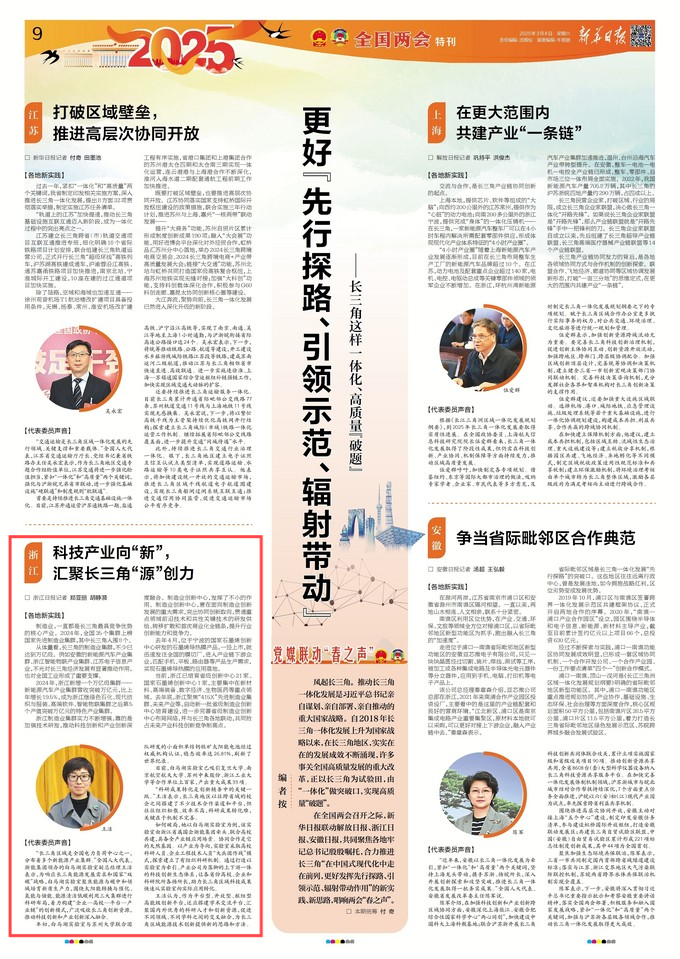 江蘇省委機(jī)關(guān)報(bào)《新華日?qǐng)?bào)》全國(guó)兩會(huì)特刊長(zhǎng)三角一體化相關(guān)主題稿聚焦全國(guó)人大代表、浙能集團(tuán)王潔同志。 新華日?qǐng)?bào) 圖