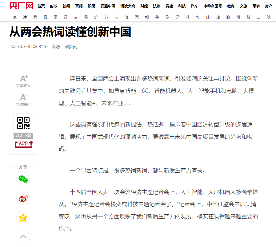 央廣網(wǎng)轉(zhuǎn)載《從兩會(huì)熱詞讀懂創(chuàng)新中國(guó)》,聚焦王潔同志。 央廣網(wǎng) 圖
