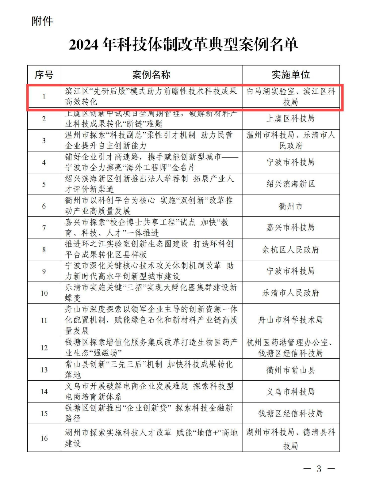 創(chuàng)新浙能 | 白馬湖實(shí)驗(yàn)室“先研后股”模式入選浙江省2024年科技體制改革典型案例