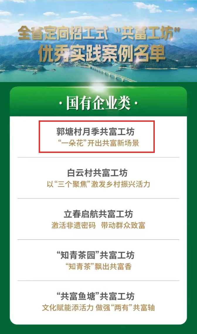 本網(wǎng)訊 日前,在全省深化定向招工式“共富工坊”建設(shè)推進(jìn)會上,發(fā)布了5個方面50個全省定向招工式“共富工坊”建設(shè)優(yōu)秀實踐案例,浙能集團(tuán)投資建設(shè)的郭塘村月季共富工坊成功入選國有企業(yè)類優(yōu)秀實踐案例,體現(xiàn)了浙能集團(tuán)作為國有企業(yè)參與共同富裕示范區(qū)建設(shè)的責(zé)任與擔(dān)當(dāng)。