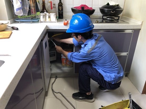 浙能城燃安吉公司點火維修工趕赴用戶家中進行檢查。 陳勇 攝