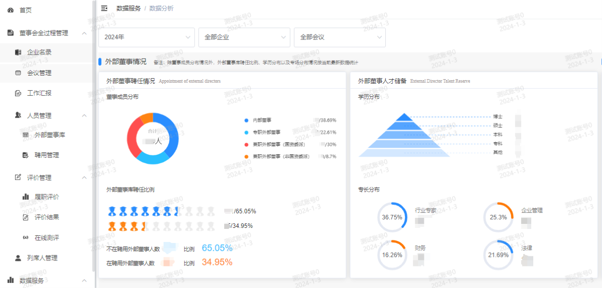 董事會(huì)運(yùn)行管理系統(tǒng)按省國(guó)資委管理要求研發(fā)部署,依據(jù)國(guó)資監(jiān)管機(jī)構(gòu)要求與企業(yè)章程,結(jié)合企業(yè)發(fā)展戰(zhàn)略和業(yè)務(wù)特點(diǎn),形成外部董事多維度畫(huà)像,深化預(yù)警提醒,前移監(jiān)督關(guān)口,可視化呈現(xiàn)各企業(yè)董事會(huì)建設(shè)、外部董事人才儲(chǔ)備等情況,實(shí)現(xiàn)預(yù)警在先、監(jiān)督有形,助力董事會(huì)規(guī)范性建設(shè)更高效、更智能。截至2023年底,董事會(huì)運(yùn)行管理系統(tǒng)已覆蓋省國(guó)資委及16家省屬企業(yè),累計(jì)錄入千余條會(huì)議數(shù)據(jù)與相關(guān)董事會(huì)議題數(shù)據(jù),以及百余條外部董事履職數(shù)據(jù),兼職外部董事庫(kù)中擁有百余位人才儲(chǔ)備。系統(tǒng)從使用便捷性、數(shù)據(jù)準(zhǔn)確性和數(shù)據(jù)實(shí)用性三方面著手,打造“好用、實(shí)用、管用”的董事會(huì)運(yùn)行管理數(shù)字化應(yīng)用。