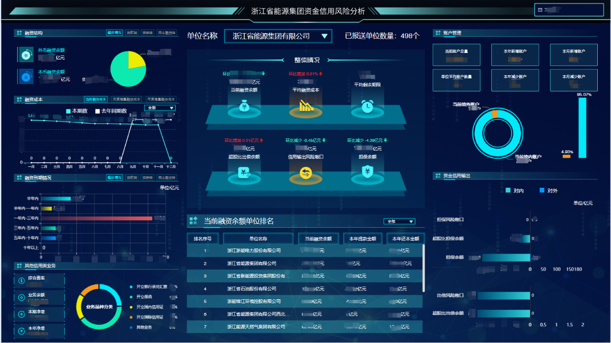 資金信用風(fēng)險(xiǎn)管理系統(tǒng)分兩部分,一是部署于省國(guó)資委財(cái)務(wù)風(fēng)險(xiǎn)監(jiān)測(cè)平臺(tái)下的資金信用風(fēng)險(xiǎn)子系統(tǒng),應(yīng)用于省國(guó)資委及各省屬企業(yè),旨在加強(qiáng)國(guó)資國(guó)企資金信用風(fēng)險(xiǎn)監(jiān)測(cè);二是部署于浙能集團(tuán)的資金管理系統(tǒng),旨在提升資金管理精細(xì)化、集約化及智能化水平,提高資金運(yùn)營(yíng)效率,防范資金風(fēng)險(xiǎn)。到目前,國(guó)資委側(cè)系統(tǒng)已完成17家省屬企業(yè)集團(tuán)推廣,企業(yè)側(cè)系統(tǒng)已完成浙能集團(tuán)約500家成員單位推廣。歷經(jīng)多次版本更迭,系統(tǒng)功能不斷完善,已實(shí)現(xiàn)賬戶全生命周期閉環(huán)管理、融資業(yè)財(cái)一體化管理、債務(wù)風(fēng)險(xiǎn)預(yù)警、資金信用輸出風(fēng)險(xiǎn)監(jiān)測(cè)、大屏智能化分析等功能,切實(shí)提升省屬國(guó)資國(guó)企資金信用風(fēng)險(xiǎn)管理水平。