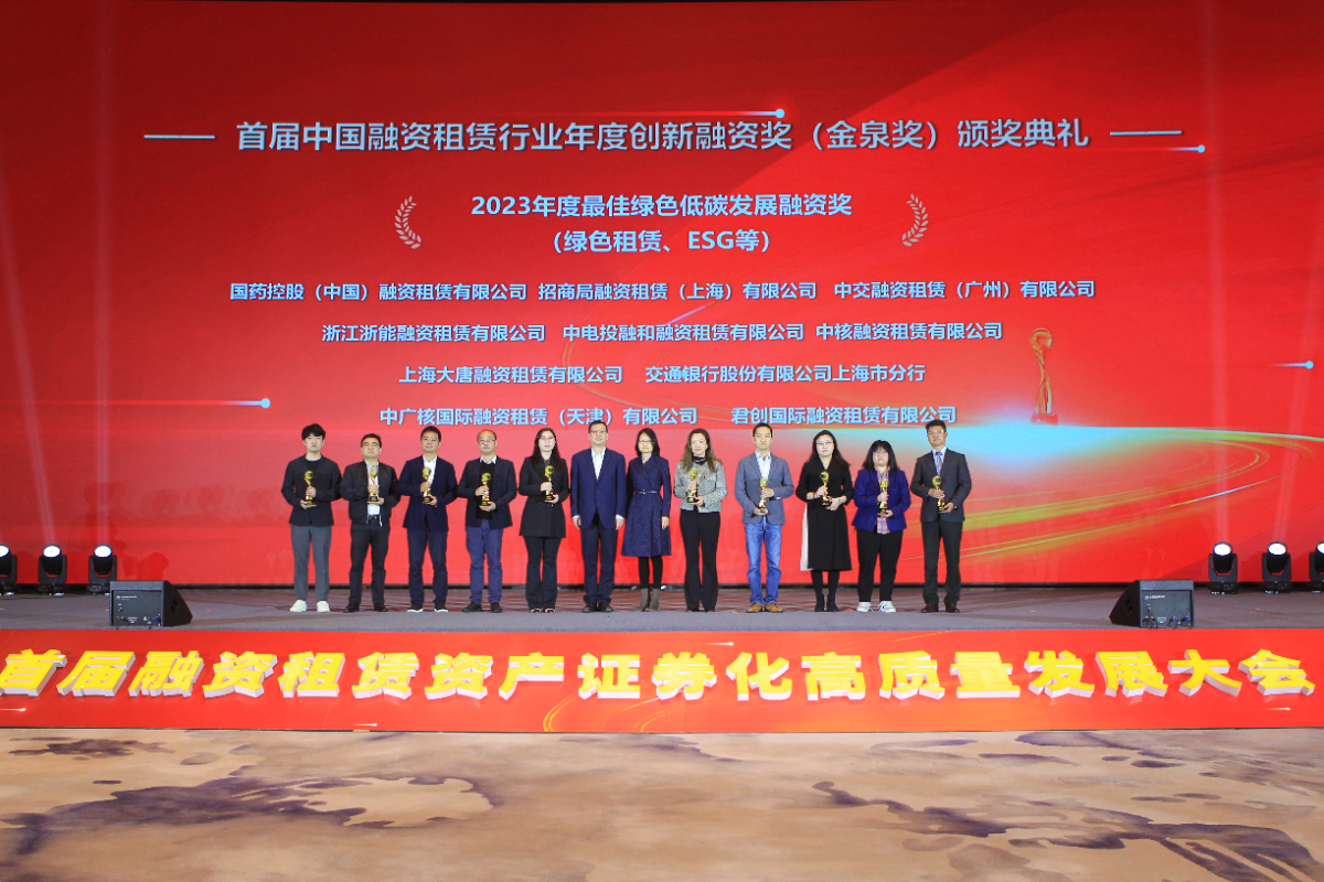 本網訊 3月29日,“金融賦能助發展、泉涌浦江潤萬企”——首屆融資租賃資產證券化高質量發展大會暨首屆中國融資租賃行業年度創新融資獎(金泉獎)頒獎典禮在上海臨港舉行,浙江浙能融資租賃有限公司受邀出席本次活動并榮獲“2023年度最佳綠色低碳發展融資獎”。