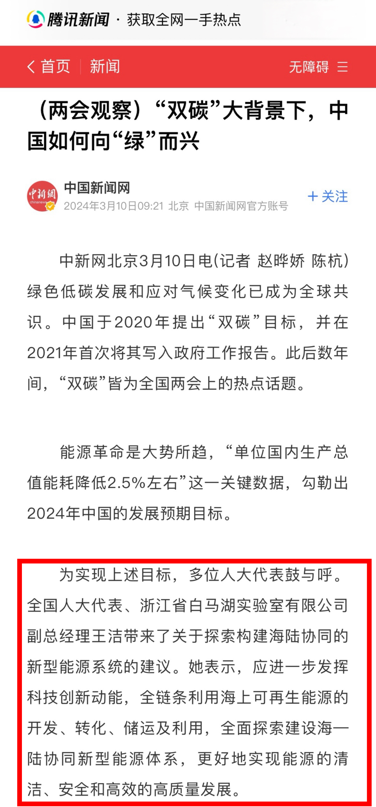 騰訊網(wǎng)報(bào)道《(兩會(huì)觀察)“雙碳”大背景下,中國(guó)如何向“綠”而興》 騰訊網(wǎng) 圖