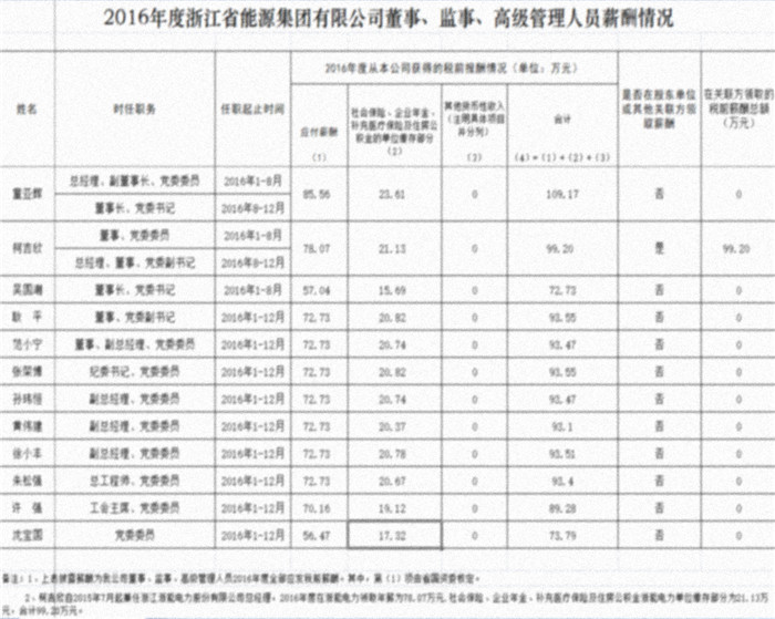 2016年度浙江省能源集團(tuán)有限公司董事、監(jiān)事、高級(jí)管理人員薪酬情況